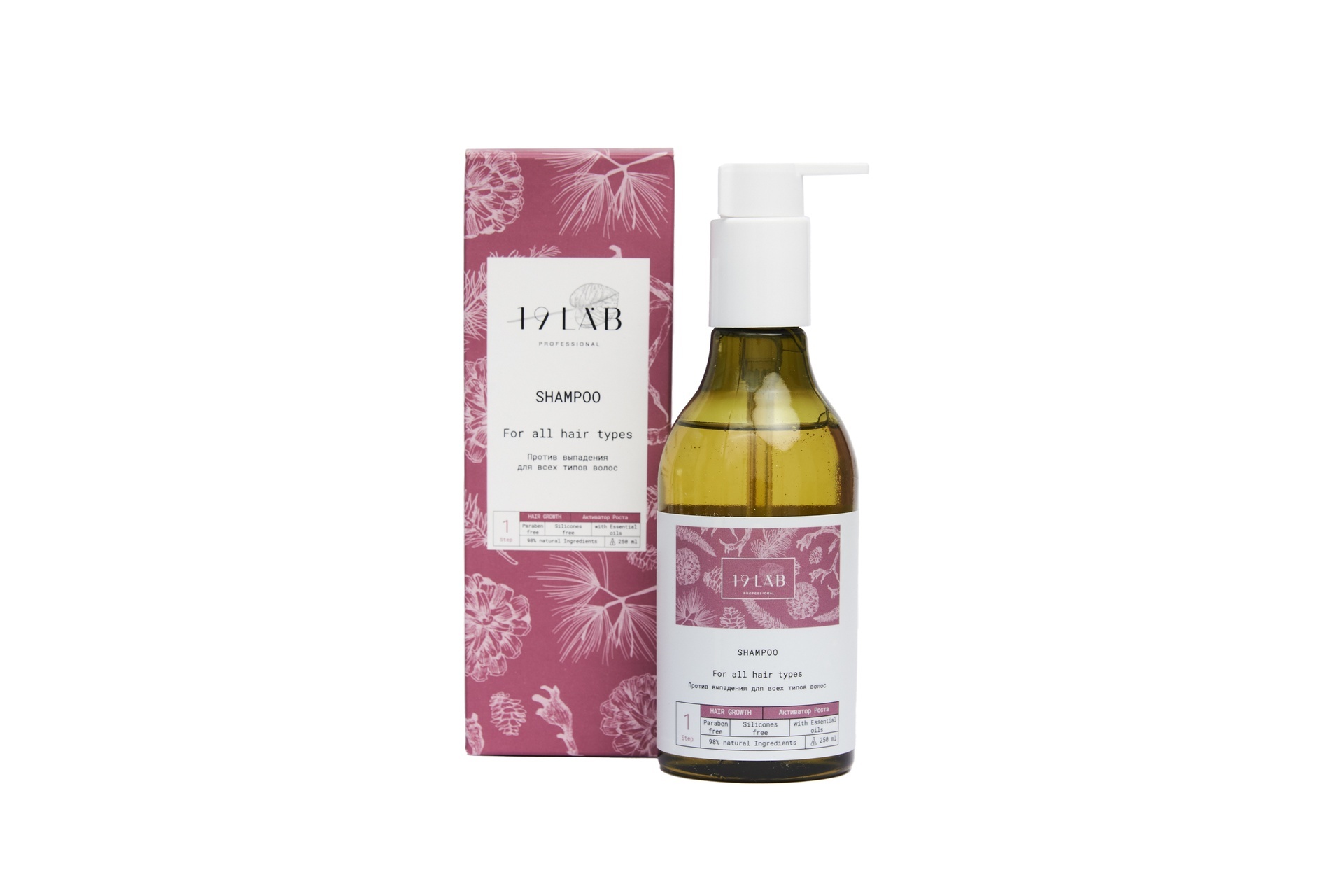 Уникальный шампунь от 19Lab, насыщенный комплексом натуральных масел и экстрактов для решения проблем с избыточным выпадением волос и стимуляции роста волос. Этот шампунь на мягкой моющей основе из 100% кокосового масла не содержит парабенов, красителей, эффективно, но мягко очищает и смягчает волосы, улучшает кровообращение кожи головы, благодаря эфирным маслам розмарина, кедра и пихты, которые подобраны в оптимально сбалансированном составе для укрепления и роста Ваших волос.
